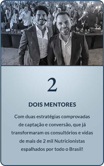 Em apenas 02 dias intensivos, você vai dominar estratégias que já transformaram os consultórios e as vidas de milhares de Nutricionistas das mais diversas áreas de atuação.