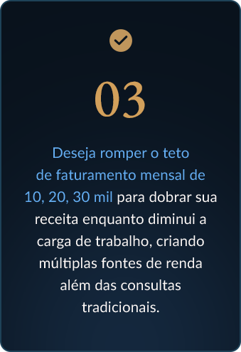 Garanta o MELHOR PREÇO na PRÉ VENDA da Imersão que vai te tirar da bolha das consultas , e tenha acesso a bastidores que vão te guiar para que você se destaque e seja referência em um mercado tão competitivo.