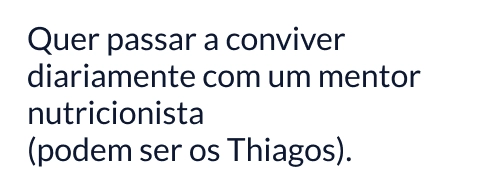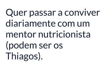 Contudo, na carreira de nutricionista, “a ordem dos fatores altera o produto”. Quando quem já chegou aonde você quer chegar te apresenta a ordem ideal e depois te acelera, você pode economizar alguns meses ou anos de vida.